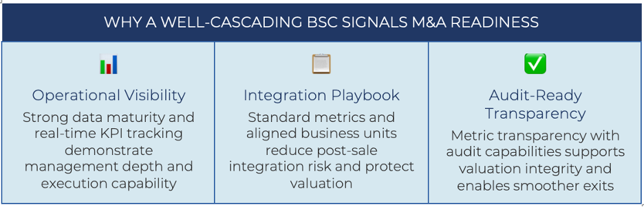 A cascading BSC does more than improve internal performance. It sends a powerful signal to the market—whether that market is a strategic buyer, a private equity sponsor, or a capital partner evaluating a potential investment.